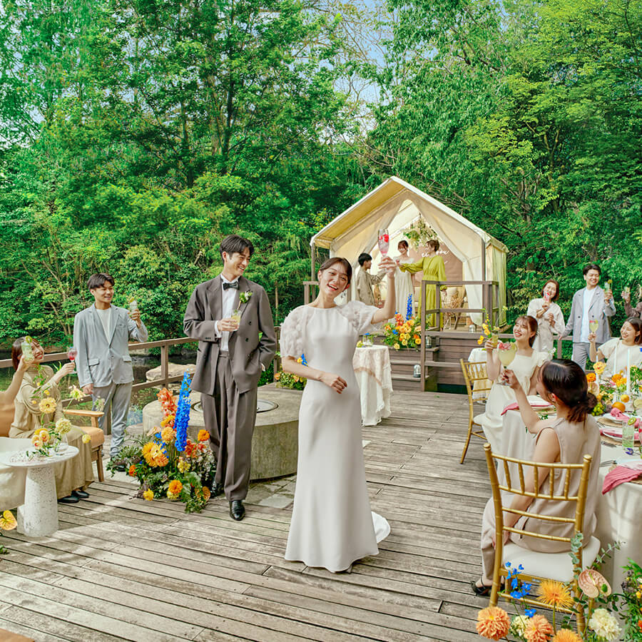 森の呼吸まで感じられるかのようなリゾート空間の中「mori wedding」が実現。