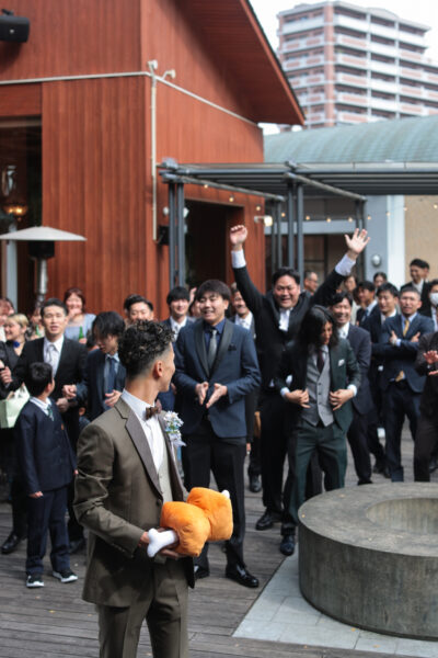 新郎ゲストに体を張ってもらうユニークな演出。