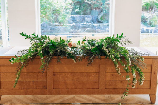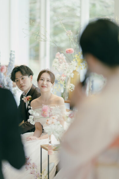 装花は両サイドを囲む形になるので、どんな瞬間のお写真にもお花が入って華やかに。