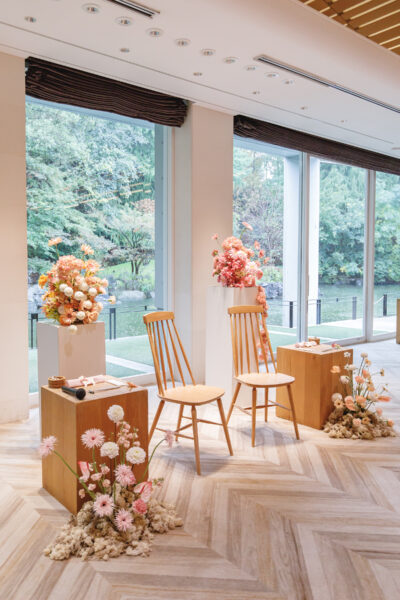 木目の雰囲気はどんなテイストのお花にもあうのでおふたりの好きなコーディネートを再現することできます!