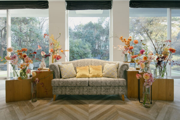同じソファでも色や花材が変わるだけで、これだけ雰囲気が違ってくるのが楽しいですよね♡