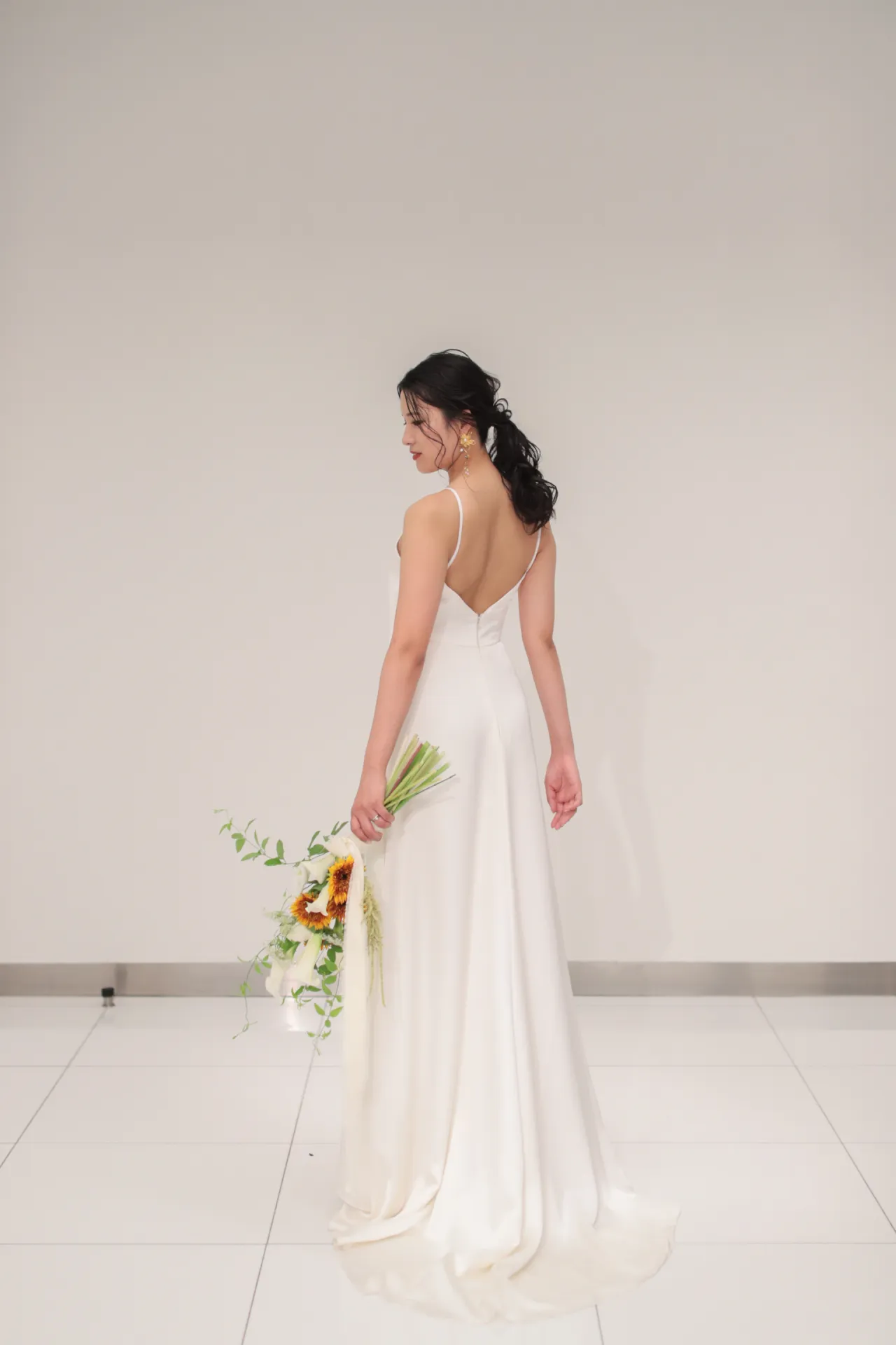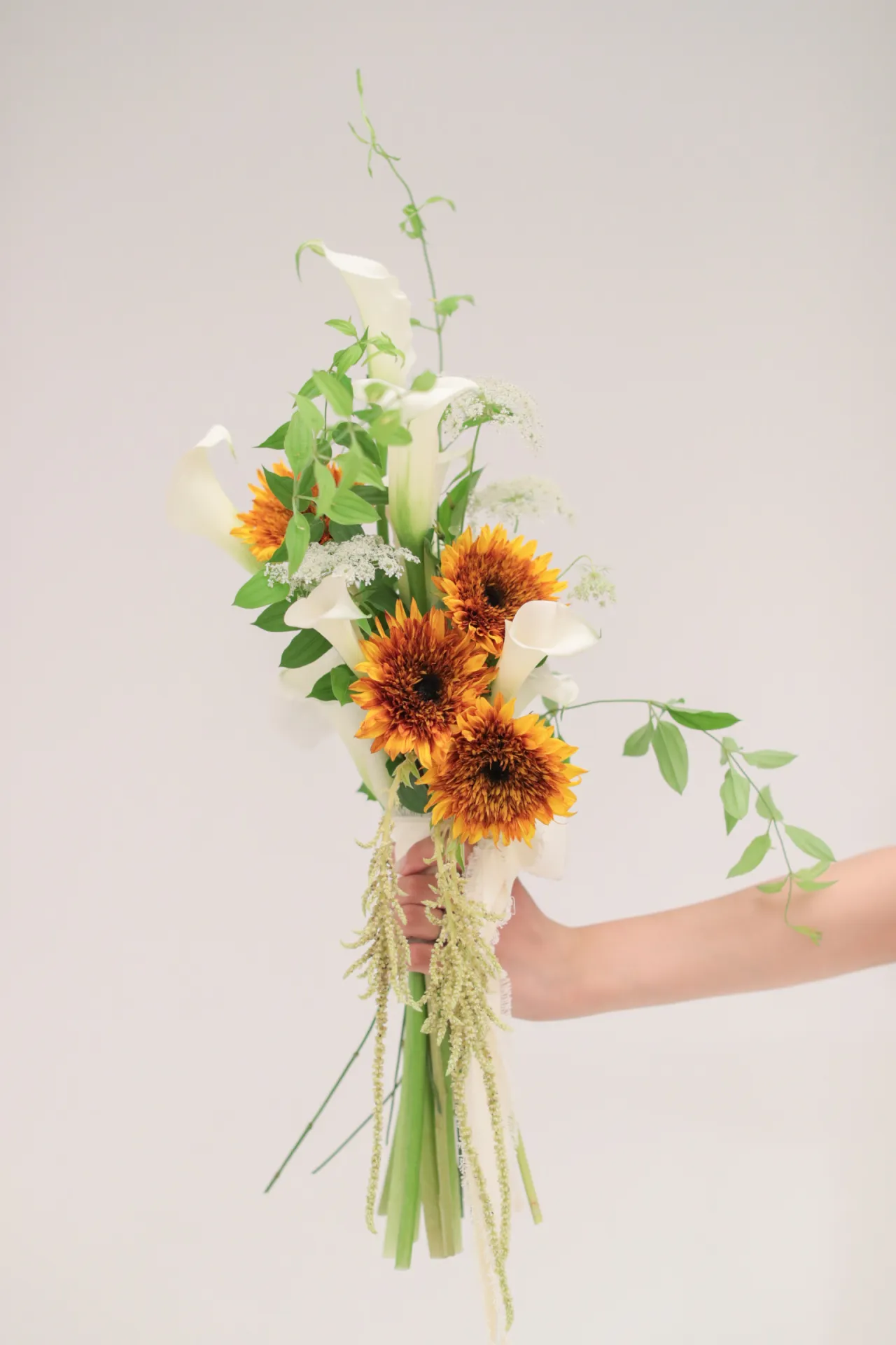 特にお色直し後のブーケは夏らしくひまわりを入れたかったのですが、可愛すぎるブーケは合わないと思っていたので希望を伝えたところ、ひまわりを活かしつつ大人シンプルなブーケという