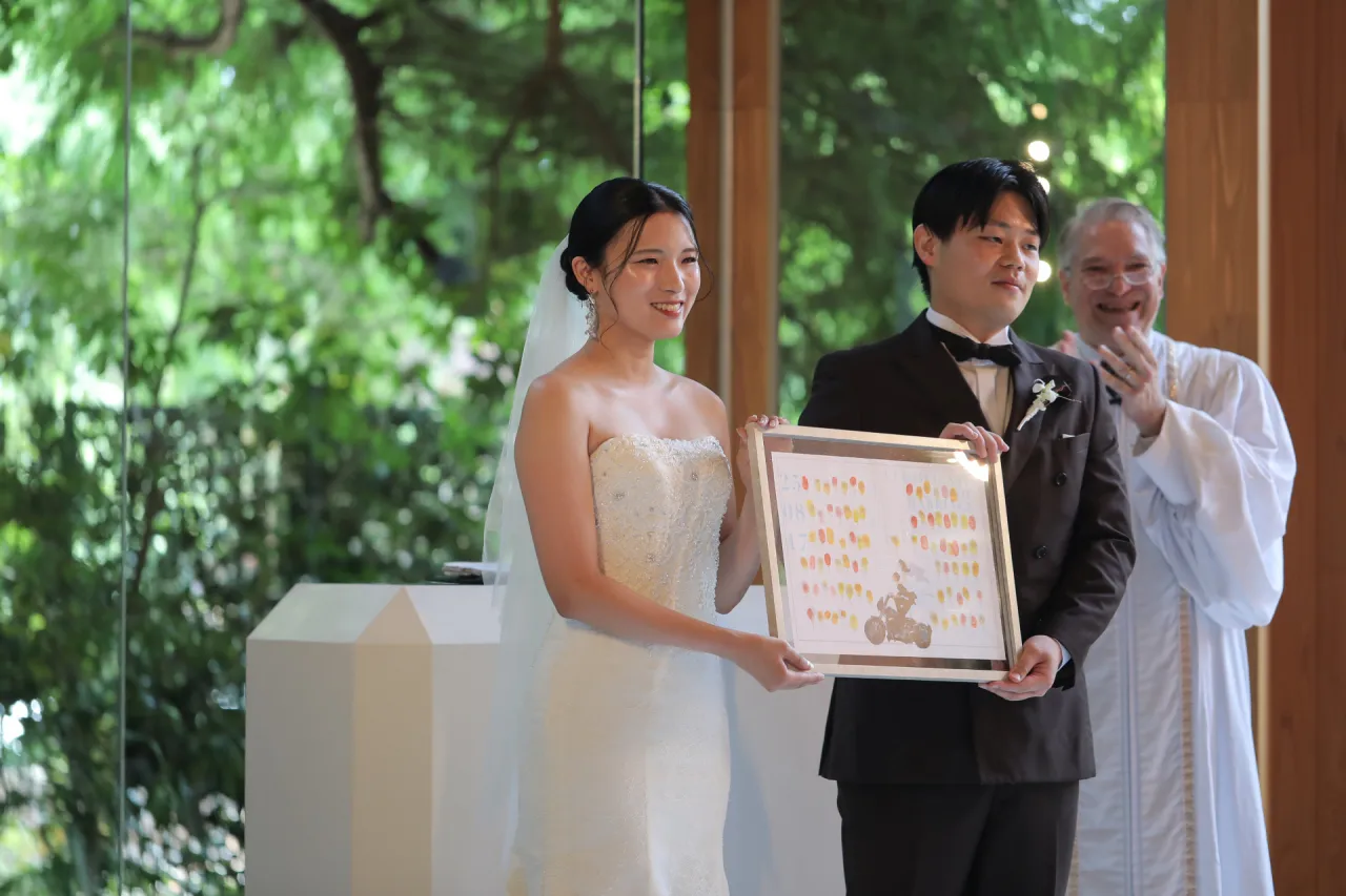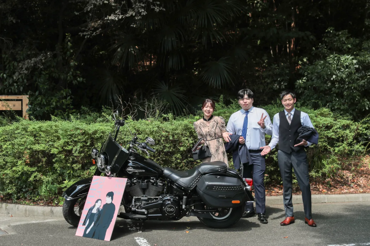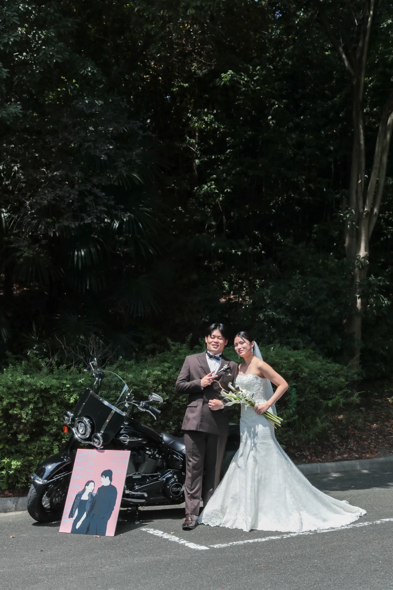 新婦の趣味のバイクは、ウェルカムアイテムとして取り入れました。