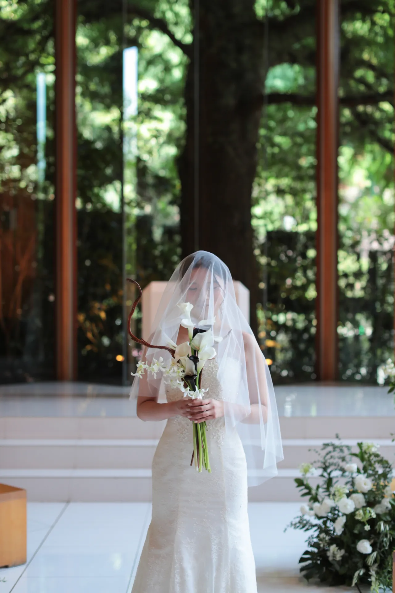 ドレスの雰囲気に合わせて茎が長いデザインでお願いをしていました。