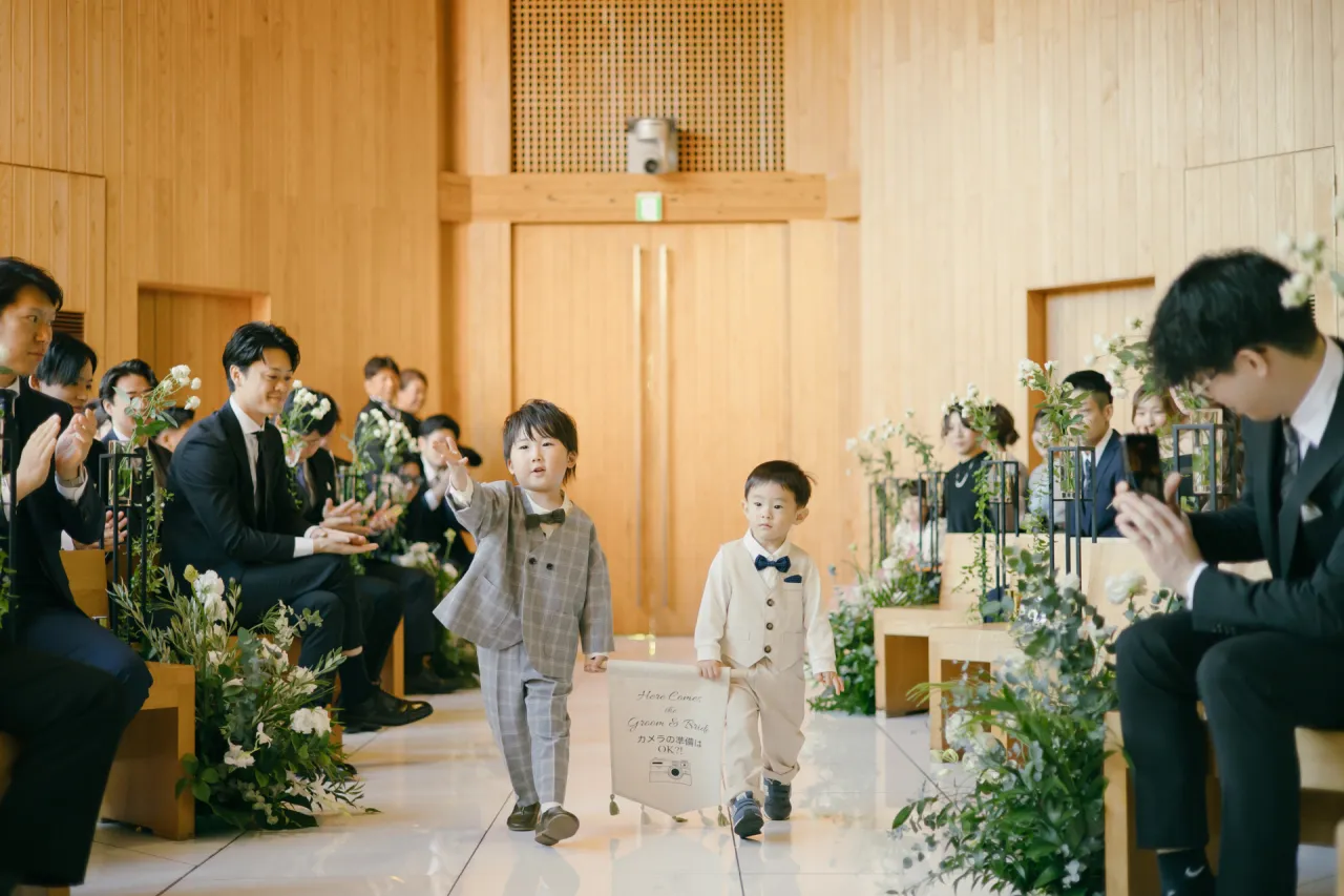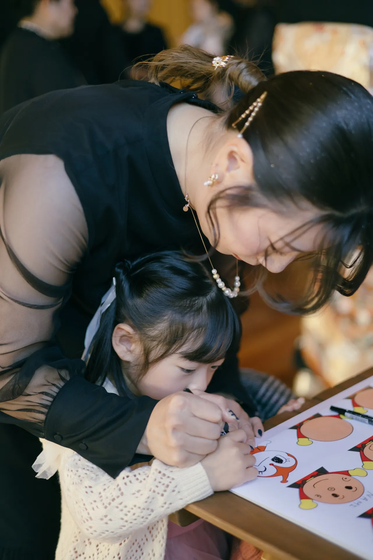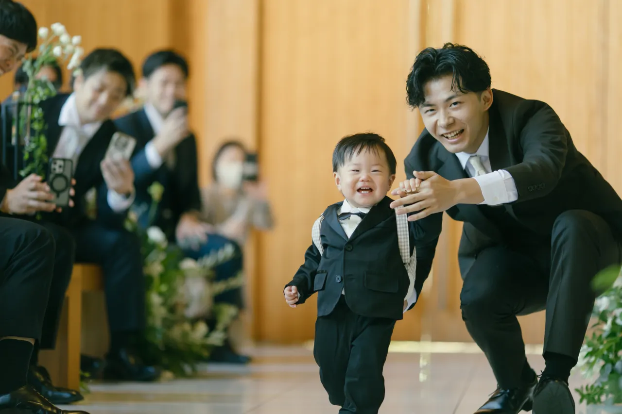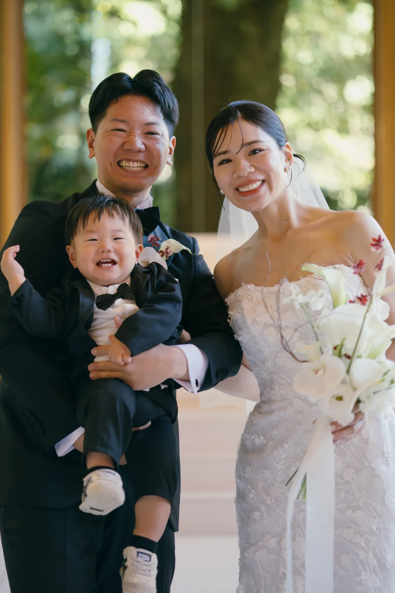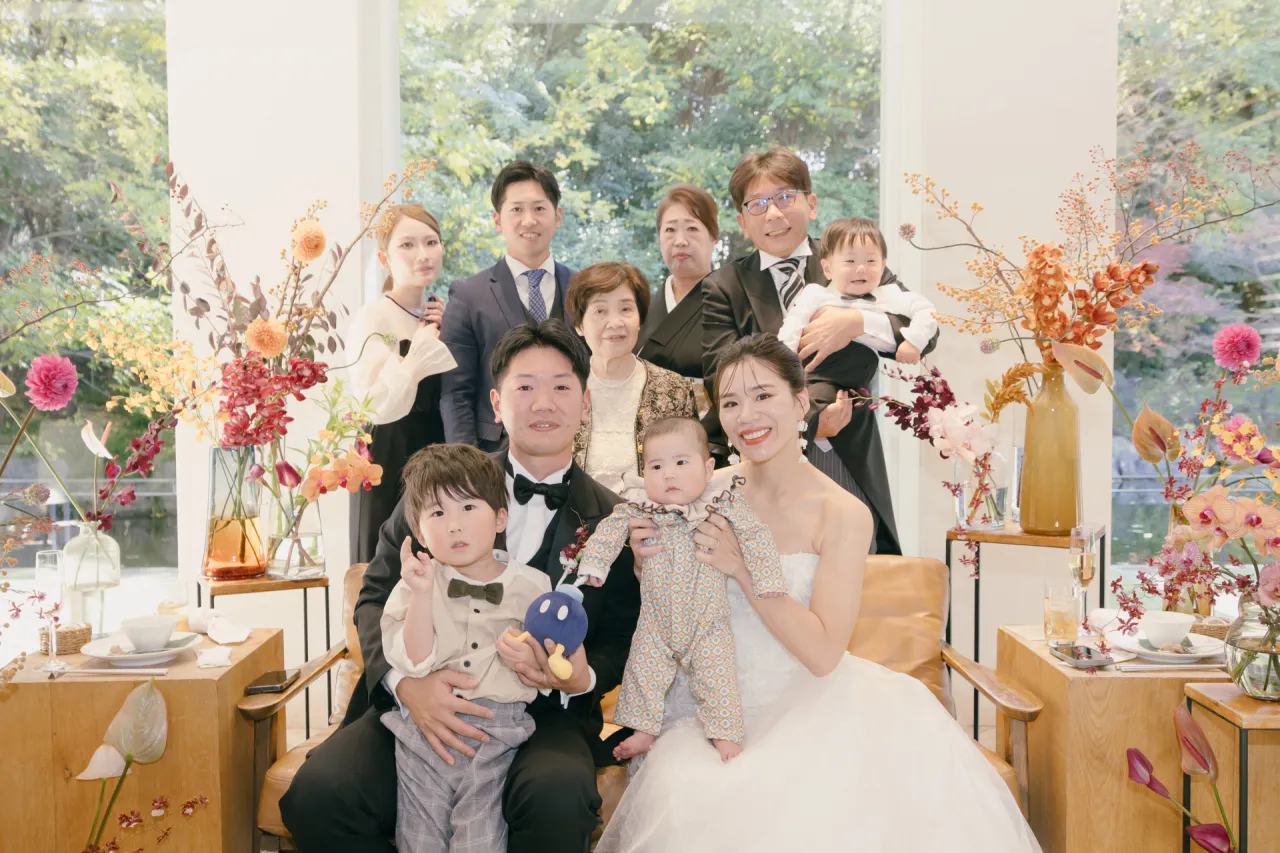 子どもとの3人での結婚式ということもあり、アニメのキャラクター演出を交えたり、参列いただいたお子様へのお菓子やおもちゃなどの配慮や、装花やテーブルデザインもこだわりました。