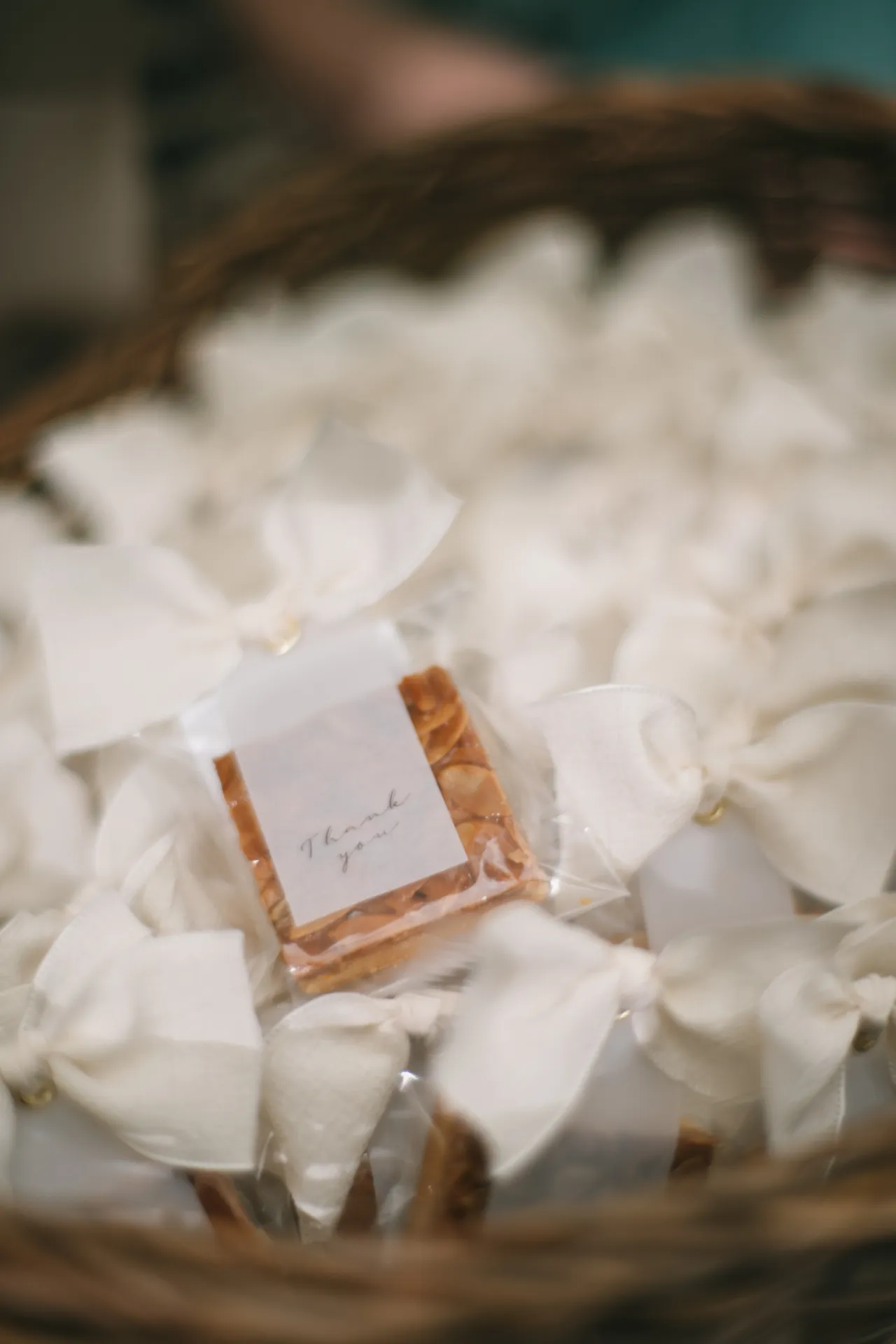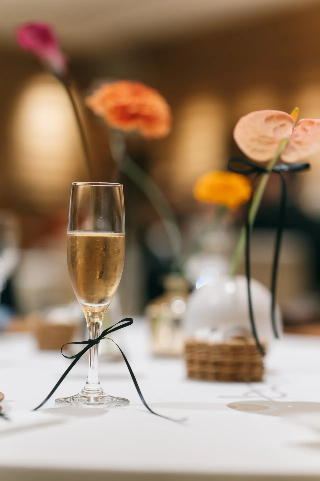 リボンをテーマにした装飾と、人とのつながりを感じられるサプライズ演出を込めて、心を結ぶという意味を込めたタイトルです。
